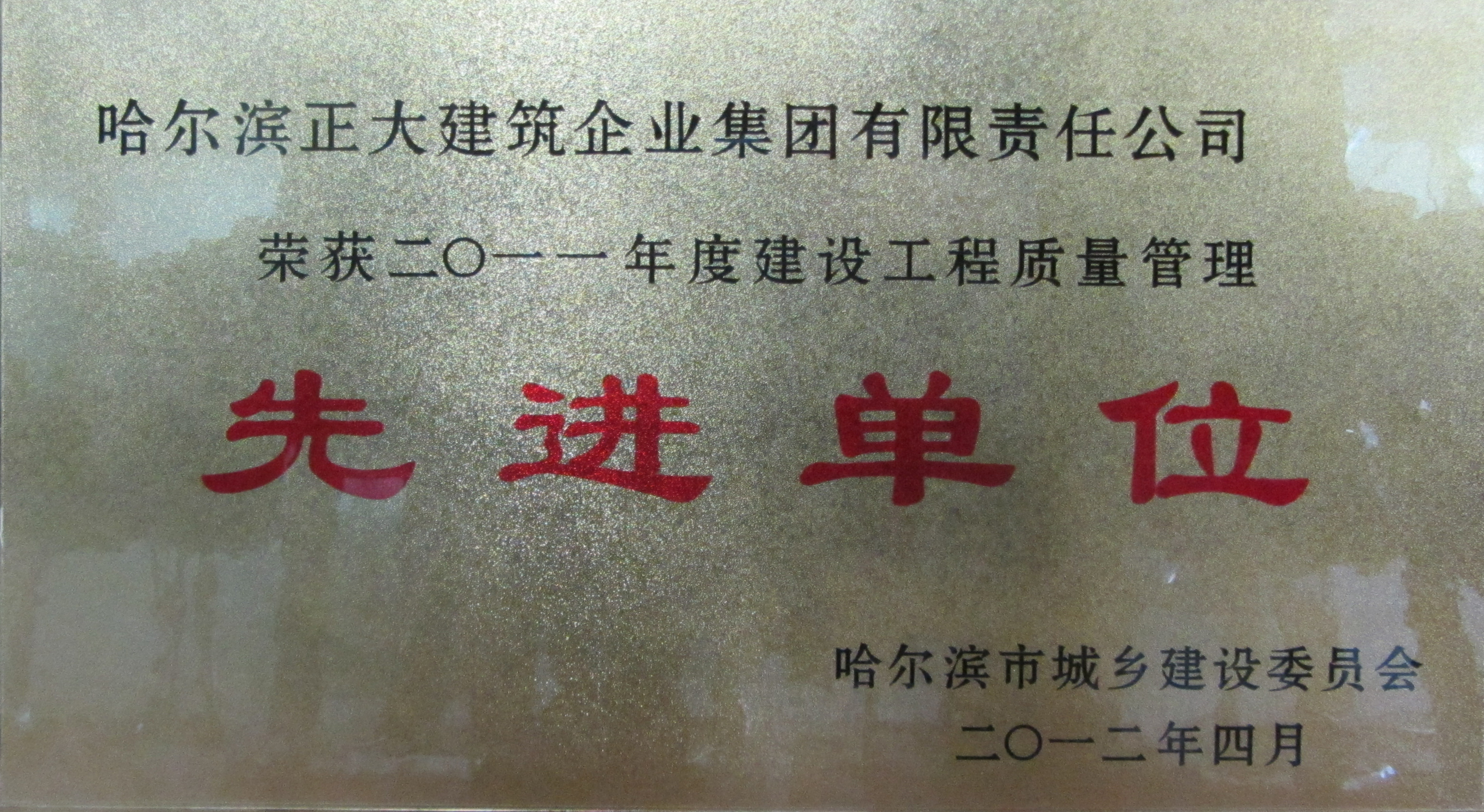 公司成立至今,先后被評為全國優(yōu)秀施工企業(yè)、全國用戶滿意施工企業(yè),全國首批建筑業(yè)誠信施工企業(yè),全國“安康杯”競賽優(yōu)勝企業(yè),全國工程建設質量管理優(yōu)秀企業(yè)、中國建設系統(tǒng)企業(yè)信用信譽AAA級單位,并多次榮獲省、市“先進單位”、“優(yōu)秀單位”、“重合同守信用單位”、“黑龍江省優(yōu)秀施工企業(yè)”、“黑龍江省用戶滿意施工企業(yè)”等光榮稱號。并連續(xù)獲得哈爾濱市質量管理先進單位、黑龍江省質量管理先進企業(yè)、黑龍江省質量管理獎、黑龍江省“安康杯”優(yōu)勝企業(yè)等榮譽。并在建筑施工現(xiàn)場環(huán)保管理上創(chuàng)造了一項“中國企業(yè)新記錄”。
